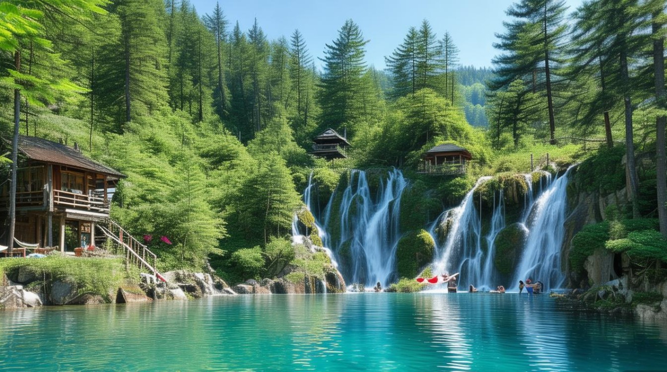 - 三叠泉:瀑布分为三级,层层叠叠,如诗如画。