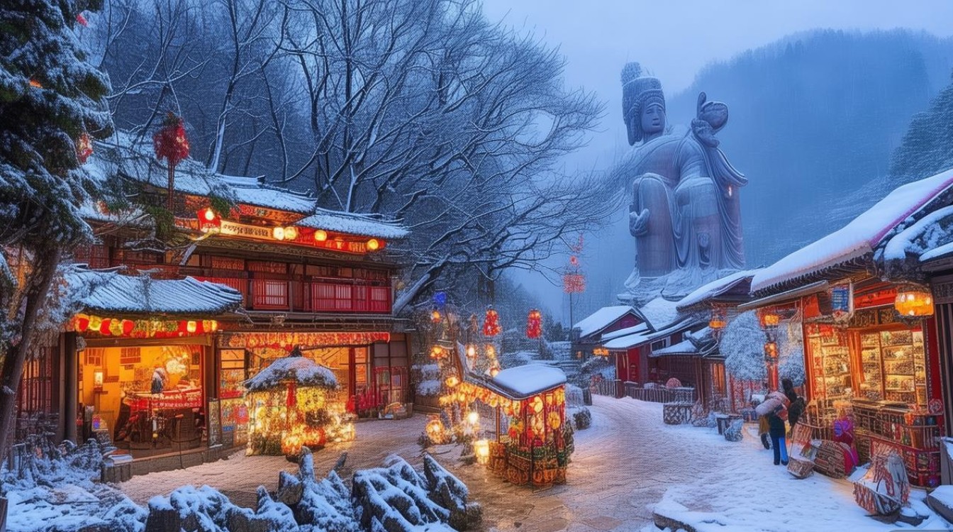 乐山大佛是世界上最大的石刻佛像,冬天的乐山,大佛与周围的山川相得益彰,给人一种庄严而宁静的感觉。 特色体验篇